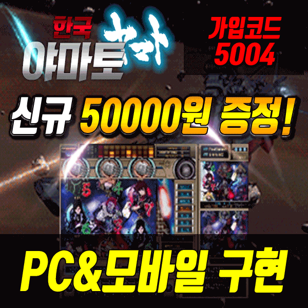 코리아 야마토 / KOREA YAMATO 신규회원 50.000원 증정!PC, 모바일버전 최초구현!오리지널 야마토 환수율 98%!매장판 확률 100% 그대로 재현!★EVENT★ 고배당 함대 이벤트 ★EVENT★ 실시간 현금 이벤트 ★EVENT★ 연타 돌파금 이벤트 가입코드 : 5004코리아 야마토 : 바로가기